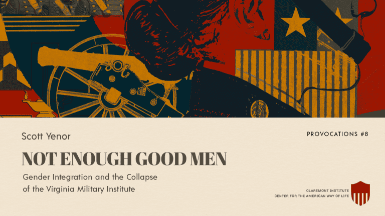 Washington, D.C.—The Claremont Institute’s Center for the American Way of Life has released a sobering and detailed report by Washington Fellow Dr. Scott Yenor on the consequences of mandated gender integration and the imposition of contemporary civil rights dogma at the Virginia Military Institute, a senior military college once celebrated for its commitment to forming men of honor and principle.